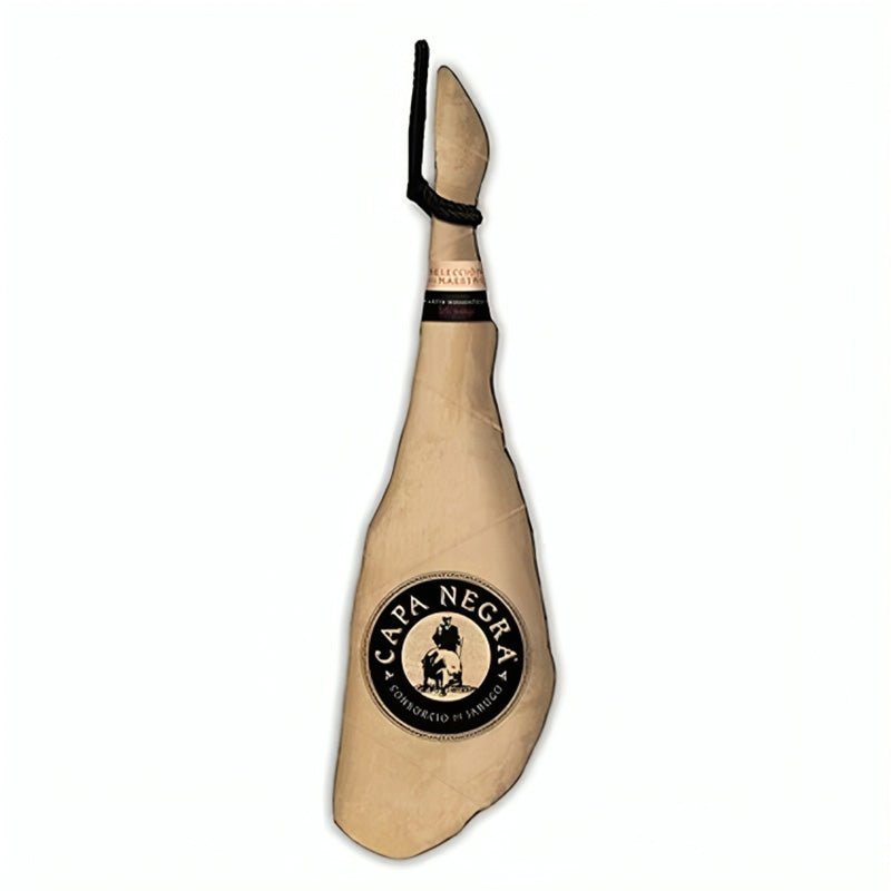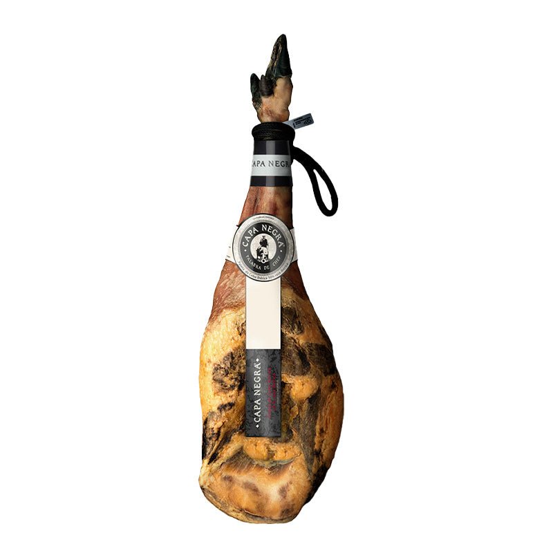 Capa Negra nace en la Sierra de Huelva como homenaje al auténtico ibérico, cuidando la elaboración de cada pieza con respeto por la tradición. Su nombre evoca la piel oscura y la característica pezuña negra de los cerdos ibéricos, símbolo de calidad y prestigio. La marca conserva los métodos heredados de generaciones de maestros jamoneros, combinando crianza responsable, curación lenta y el microclima serrano, lo que garantiza productos de perfil aromático único y sabor inconfundible.